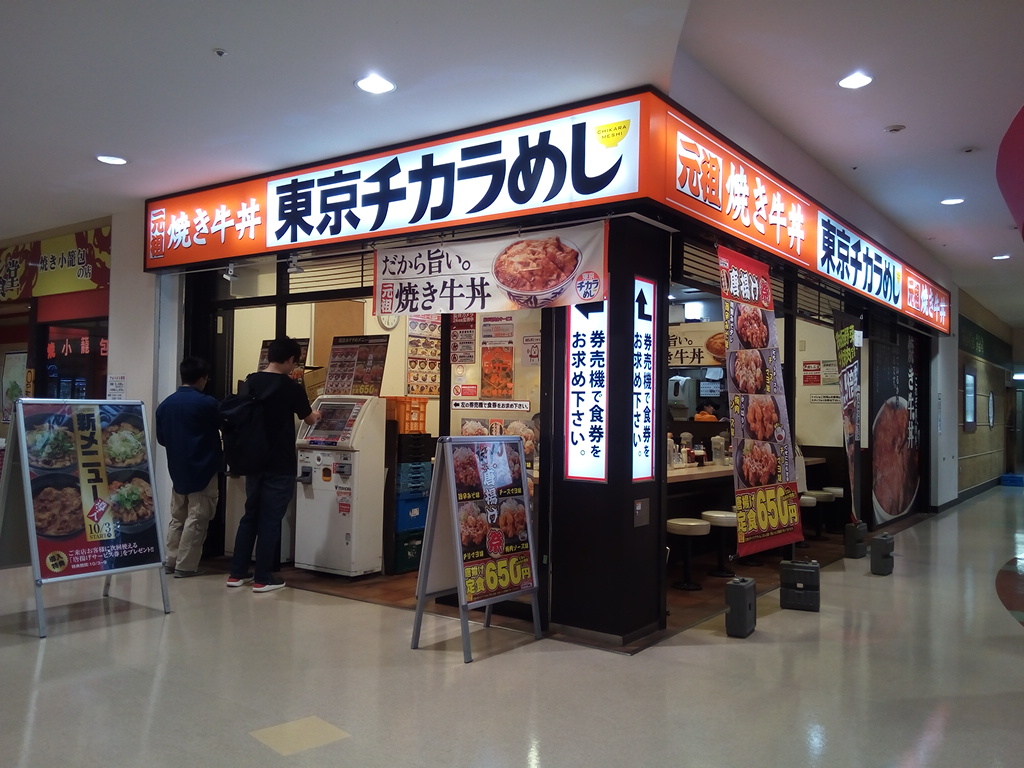 JR海浜幕張駅前のアミューズモール1階に入っている牛丼店です。ここの牛丼は焼いてあるのが特徴です。