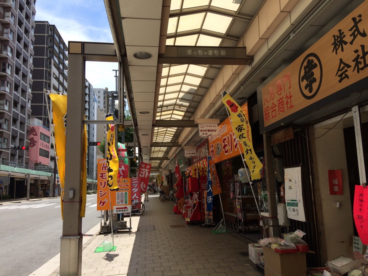 南北約1kmにわたる松屋町筋は昔ながらのアーケードの商店街です。