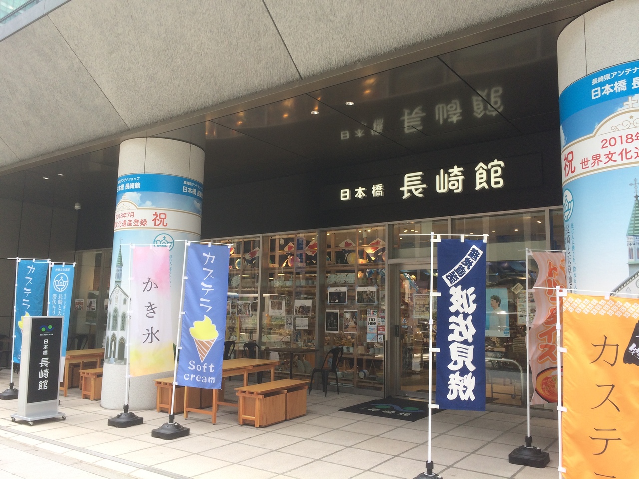長崎県のアンテナショップで広いフロアに商品がびっしり陳列されていました。カステラの種類が豊富で一つからも購入出来るのが良いです。チャンポンもたくさん置いてあり冷凍品もありました。片隅に観光パンフレットが置いて案内人も常備していました。