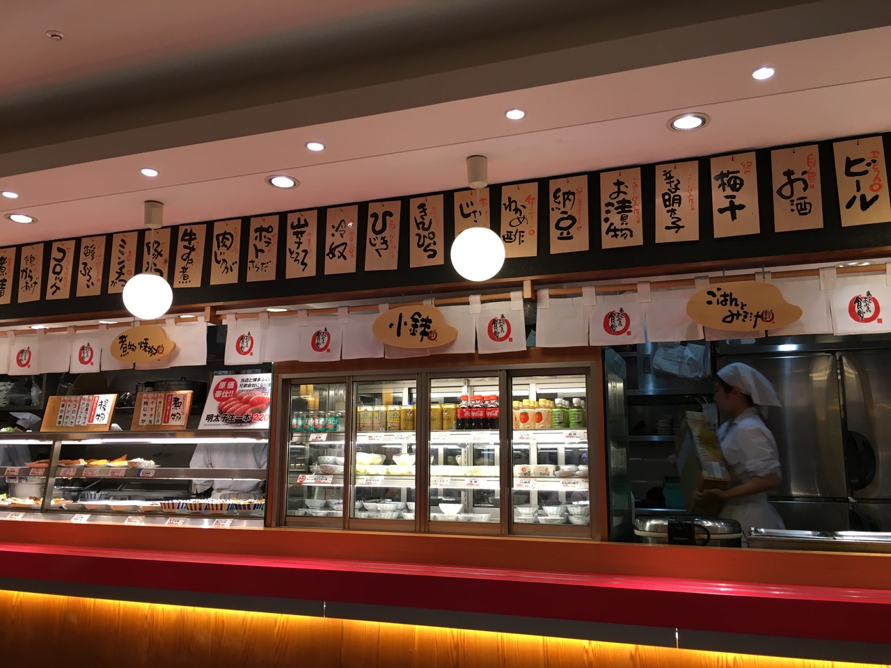 海外旅行の帰りに利用しました、あっさりした和食が食べたく、でも軽めに食べたい、と思っていたのでピッタリのお店でした。最初にトレーを取って、自分の食べたいおかずをのせていき、最後にご飯とお味噌汁をもらってお会計します。味はまあまあですが、安いしお手軽に利用できます。