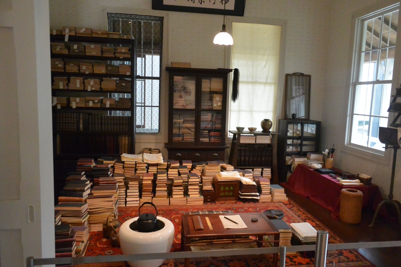 住宅街にあるとてもきれいで瀟洒な建物です。見た目は図書館のよう。(実際漱石関連の図書室あり)無料部分と有料部分に分かれていて、一階の有料部分は漱石の居宅であった漱石山房を再現したもので、この部分は写真OK。二階は資料展示になります。ベランダまで再現された山房はよくできています。資料展示は少々ボリューム不足かなという感じでした。一階のカフェは賑わっていました。入館者にはカフェの割引券もくれます。