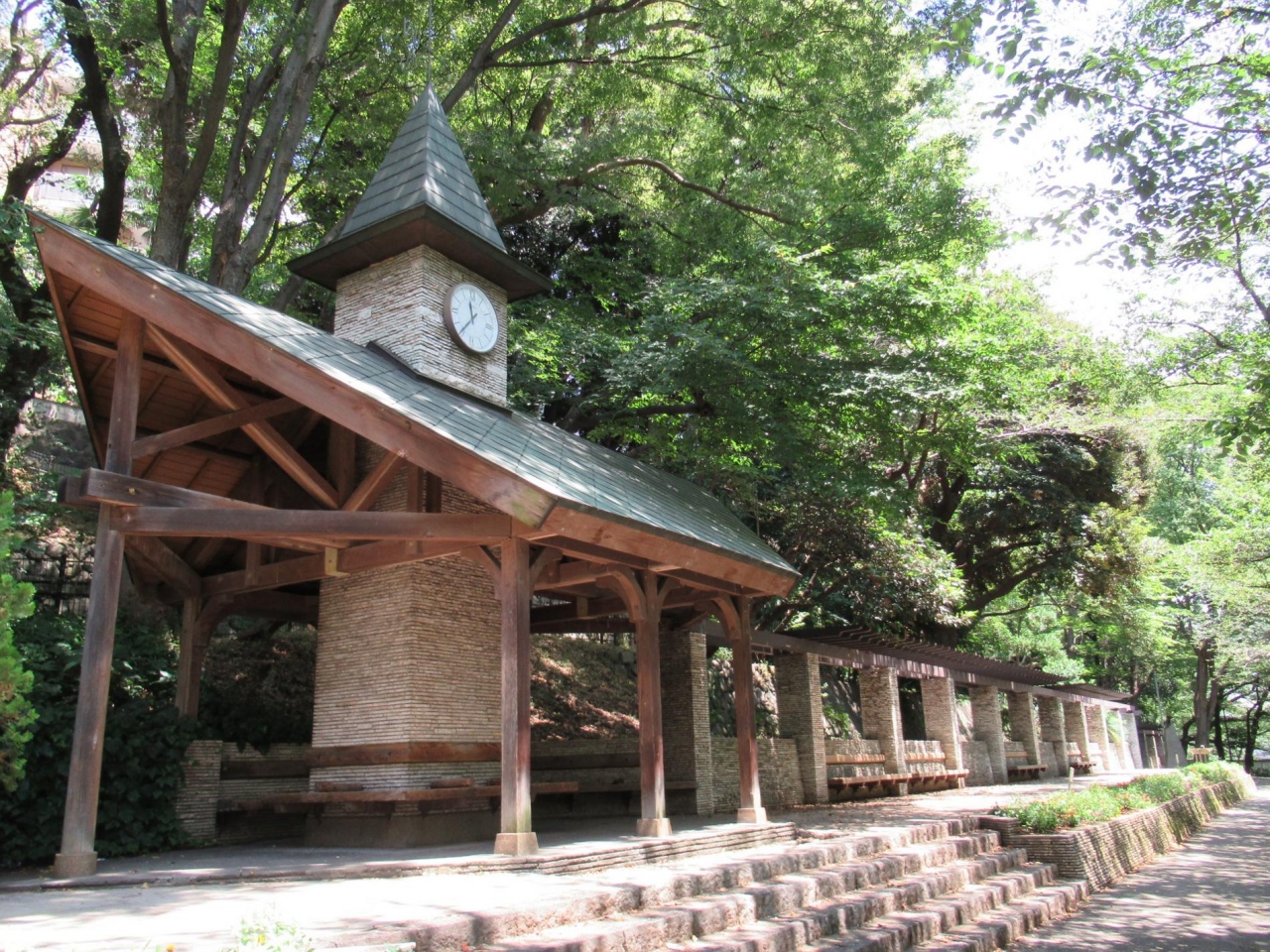 文京区関口2丁目の神田川北側沿いにある区立の公園で、東西に細長く四阿やテラスなどと滑り台他若干の遊具があり、桜並木と一体になっているところです。