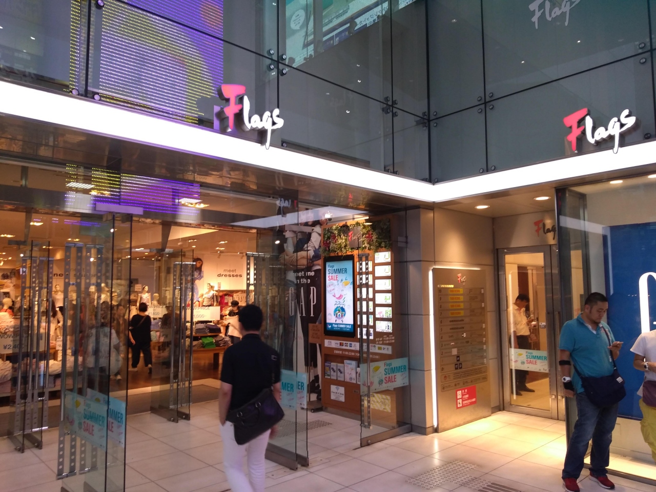 フラッグスは、新宿駅の南口から直ぐで、ルミネ2と隣接している分かりやすい場所です。スタジオアルタのように、大きなテレビが建物の外壁にあって、それを見るのも楽しいです。新しいライフスタイルを提案するファッション系の店舗が多く、要注目です。