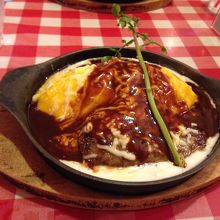 連れとビーフシチューオムライスとドリアオムライスを頼んでシェアしました。味はどちらも同じ、チキンライスは嫌だったのですが白いご飯も味気ないかと思っていたらご飯が五穀米(?)で麦ごはんみたいにしっかりしていてオムライスに合っていました。