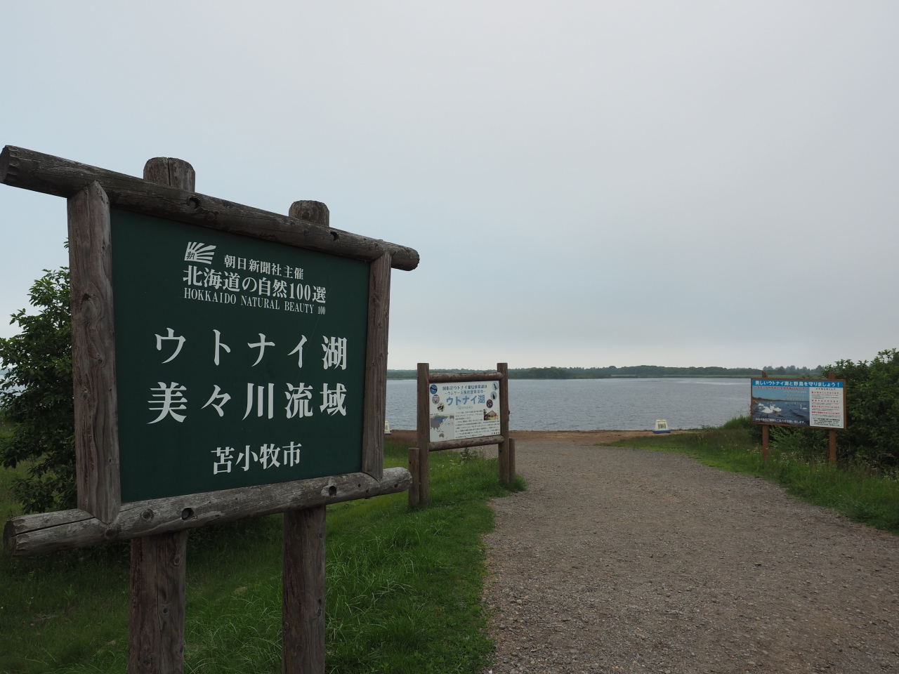 道の駅の裏手側に広がっている比較的大きな湖です。落ちているのは白鳥のフンですよ、という表示があって、確かに湖畔には黒っぽい糞がたくさん落ちていました。7月なのにまだ白鳥がいるのかと怪しんでいたら本当に白鳥っぽい水鳥がいて驚きました。北に帰らなくていいのかな・・・・。