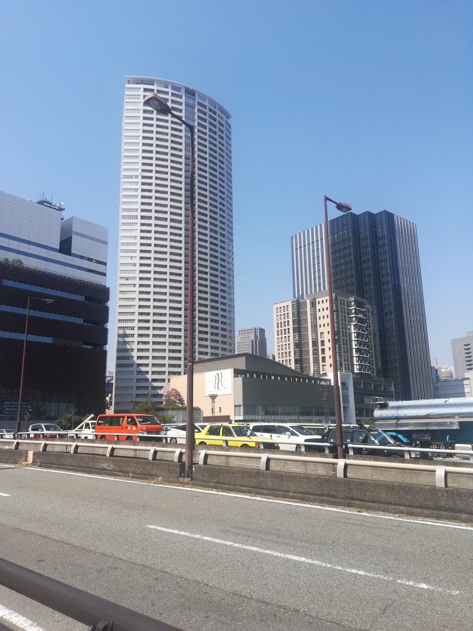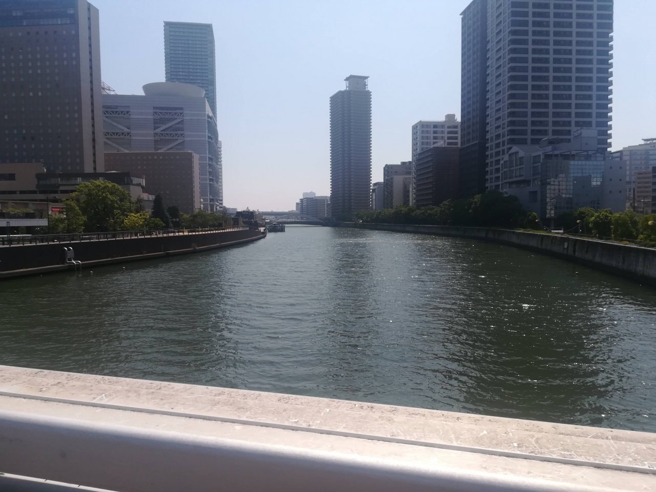 梅田からやや西にあるためか、高層ビルの密度が少なく、広々とした景色が広がっています。橋自体はなにわ筋という大きな道路の一部なので近代的で立派なもので、リバーサイドウォークなどもあり時期が良ければ気持ちのいい散歩ができそうでした。