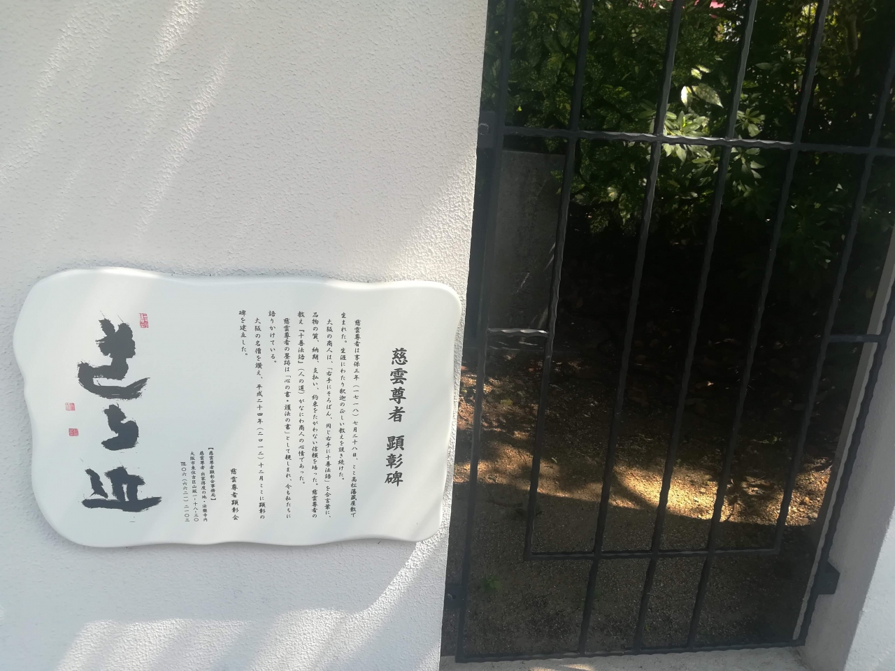 京阪電車の中之島駅が至近でですが、環状線の福島駅からも玉江橋を渡って10分ほどです。近代的な建物を囲む壁の一部が開けられて記念碑が見えるようにされているのは珍しかったです。碑文によれば、慈雲尊者はこの地にあった高松藩屋敷で生誕し、後に高僧となり、説かれた教えは大阪商人の気質に受け継がれているそうです。