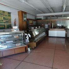 シャッターが半分さがっていますが、扉は空いています。中に入ってみると、ショーケースには和菓子は何もなし。