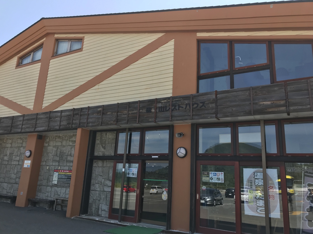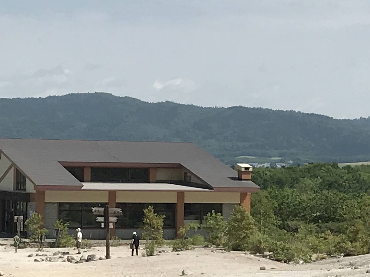 噴煙吹き出す硫黄山の麓の駐車場エリアにポツンと建っています。