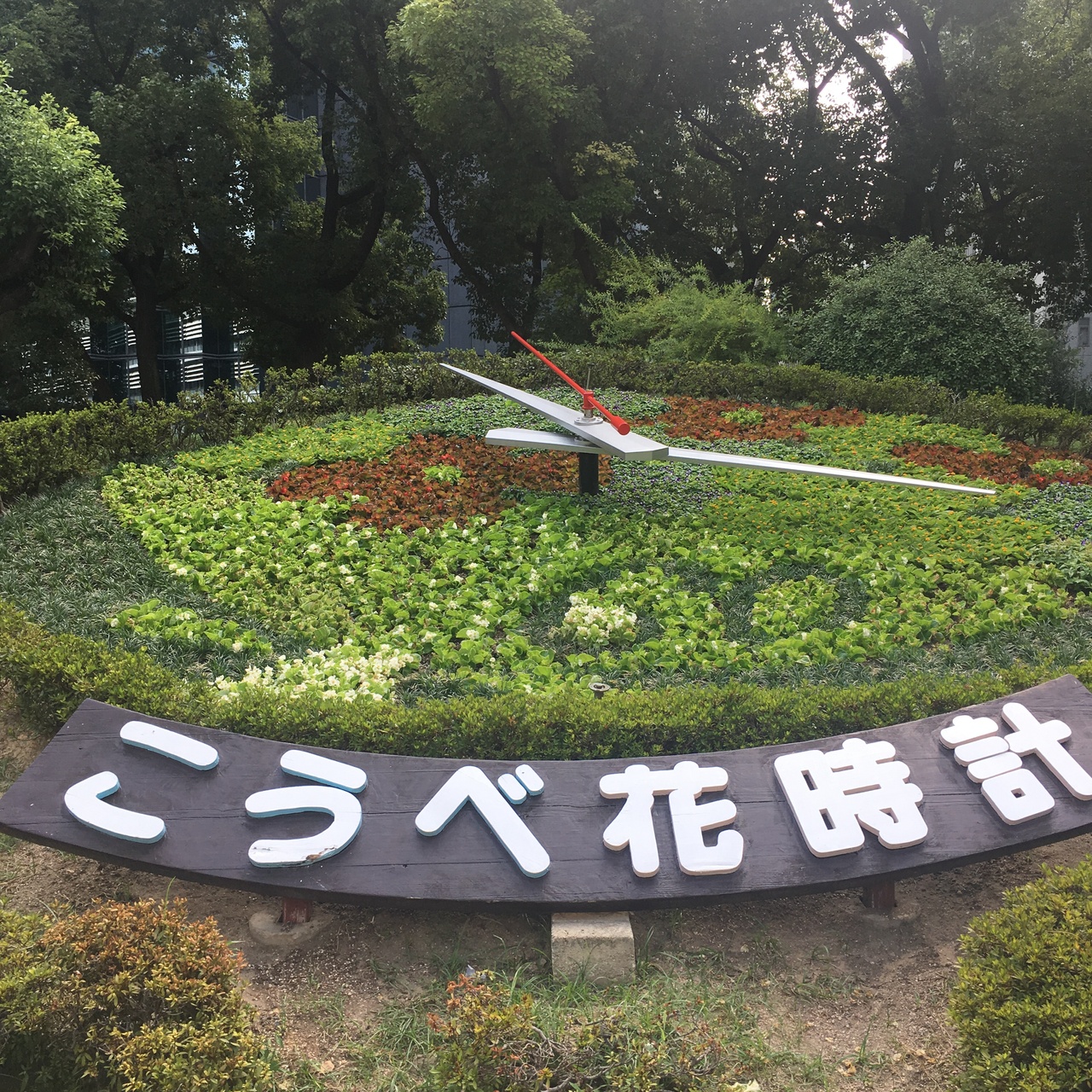三ノ宮駅からも近い場所にあり、徒歩にて向かいました。その名前の通りですが、お花でできた時計です。デザインについては、説明書きがされている看板もあるのでわかりやすいです。仕方のないですが、正面ではなく次回は上から見てみたいです。