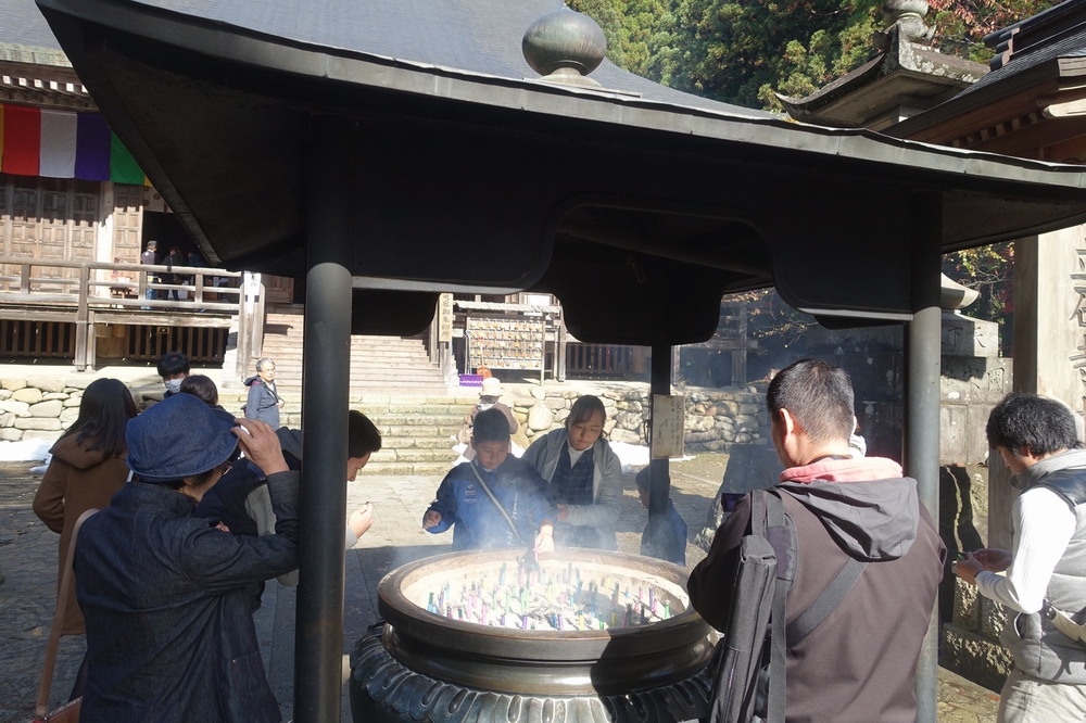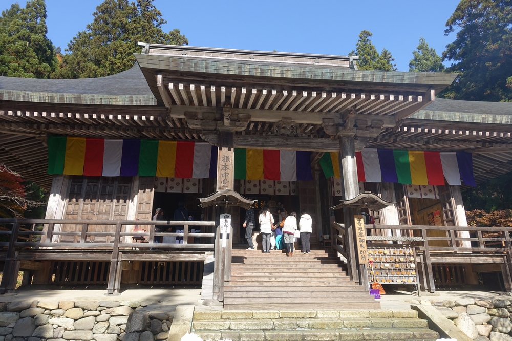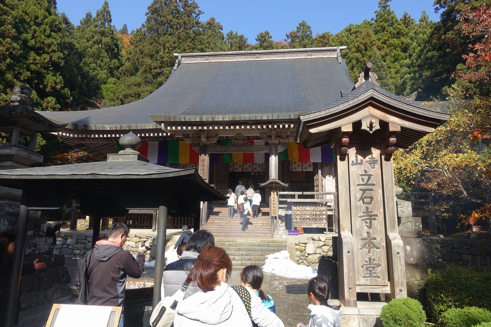 登山口の石段を上ってすぐ目にするのが根本中堂で、立石寺の本堂になります。できれば山の上の奥之院や五大堂まで行くほうがいいとは思いますが、体力や時間的に難しいという人はこちらをお参りするといいんじゃないでしょうか。有料区域の手前なので誰でも参拝できます。