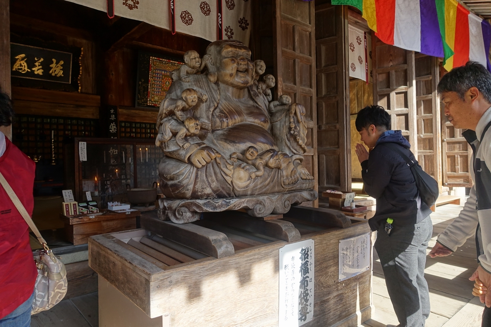 代わりにユニークな招福布袋尊が迎えてくれます。布袋尊の体を撫でて願いごとをすると叶うそうで、長年に渡ってたくさんの人に撫でられてツルツルになっていました。ほっこりするお顔で癒されます。