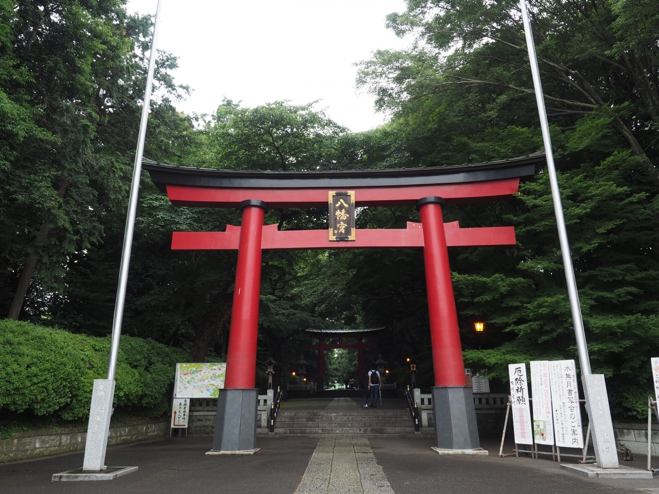 樹齢の長そうな大きな木々がうっそうと茂っていて、東京都区内とは思えないしっとりとした厳粛な雰囲気でした。雨が降った後ということもあって余計に風情が感じられたんだと思います。境内は広く、立派な神社で、お天気がいまいちだったにも関わらず参拝客が思いのほか多くいました。