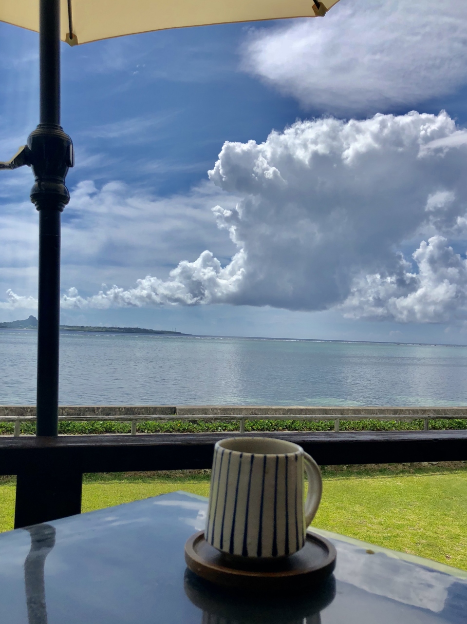 フクギ並木の入り口あたりにあるカフェです。ランチ後のティータイムで訪れましたが遅めのランチ中の人でテラス席はいっぱいでした。店内でも窓が大きく開放感があるので、エアコンも効いてるしこっちの方が良い、としばらく店内で涼んでいるうちにテラス席が空いたので途中で移動させてもらいました。コーヒーとデザートしか頼みませんでしたが、味は普通かな?お値段は都会並み。店内の雰囲気が洗練されているので、まあ納得です。テラスからの風景は、人が通る道路沿いなので、ガイドブックの写真から受けた印象とはちょっと違いました。