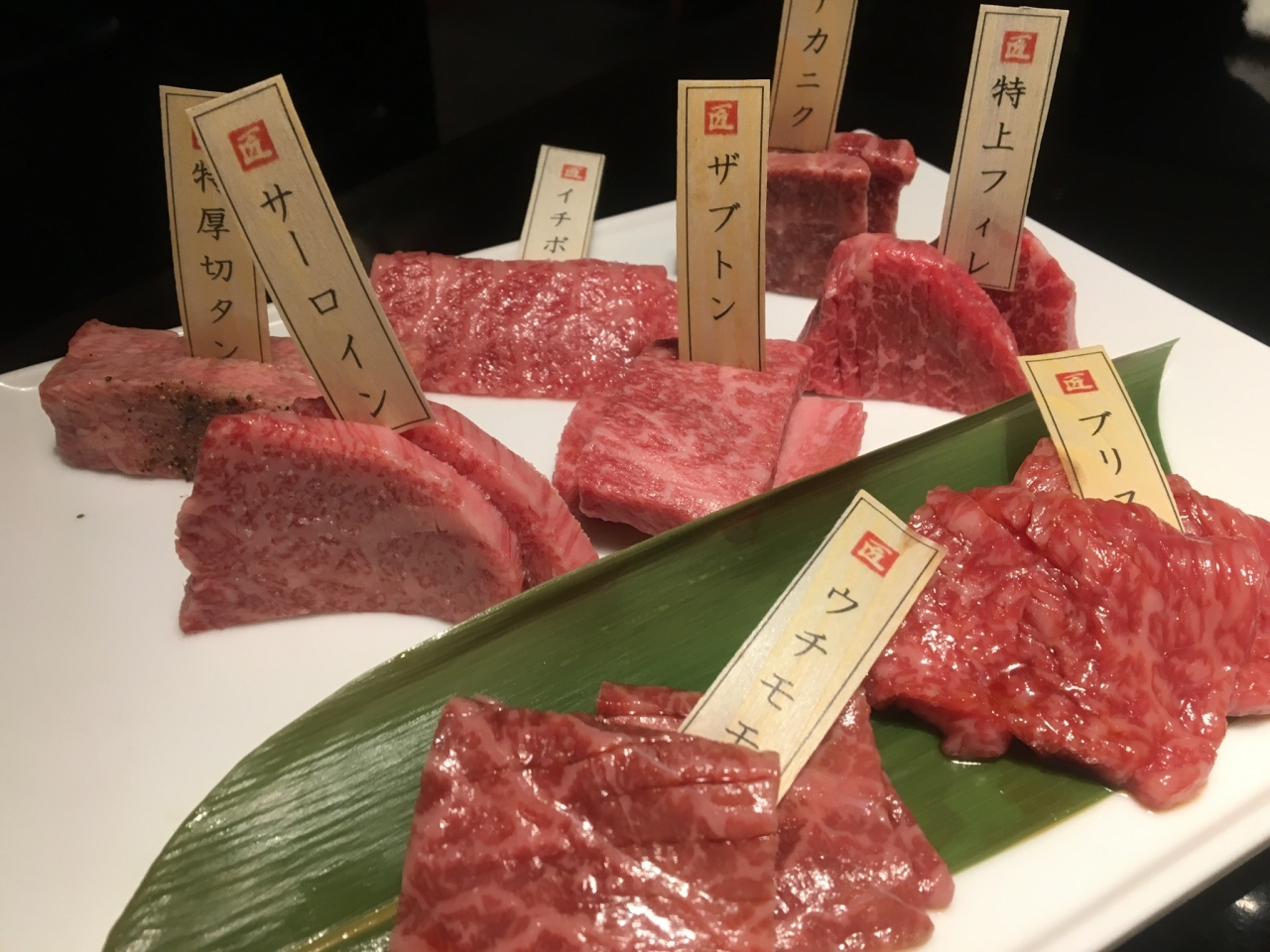 お肉は部位別に8種類。焼き方や食べ方のインストラクションもあって楽しめました。