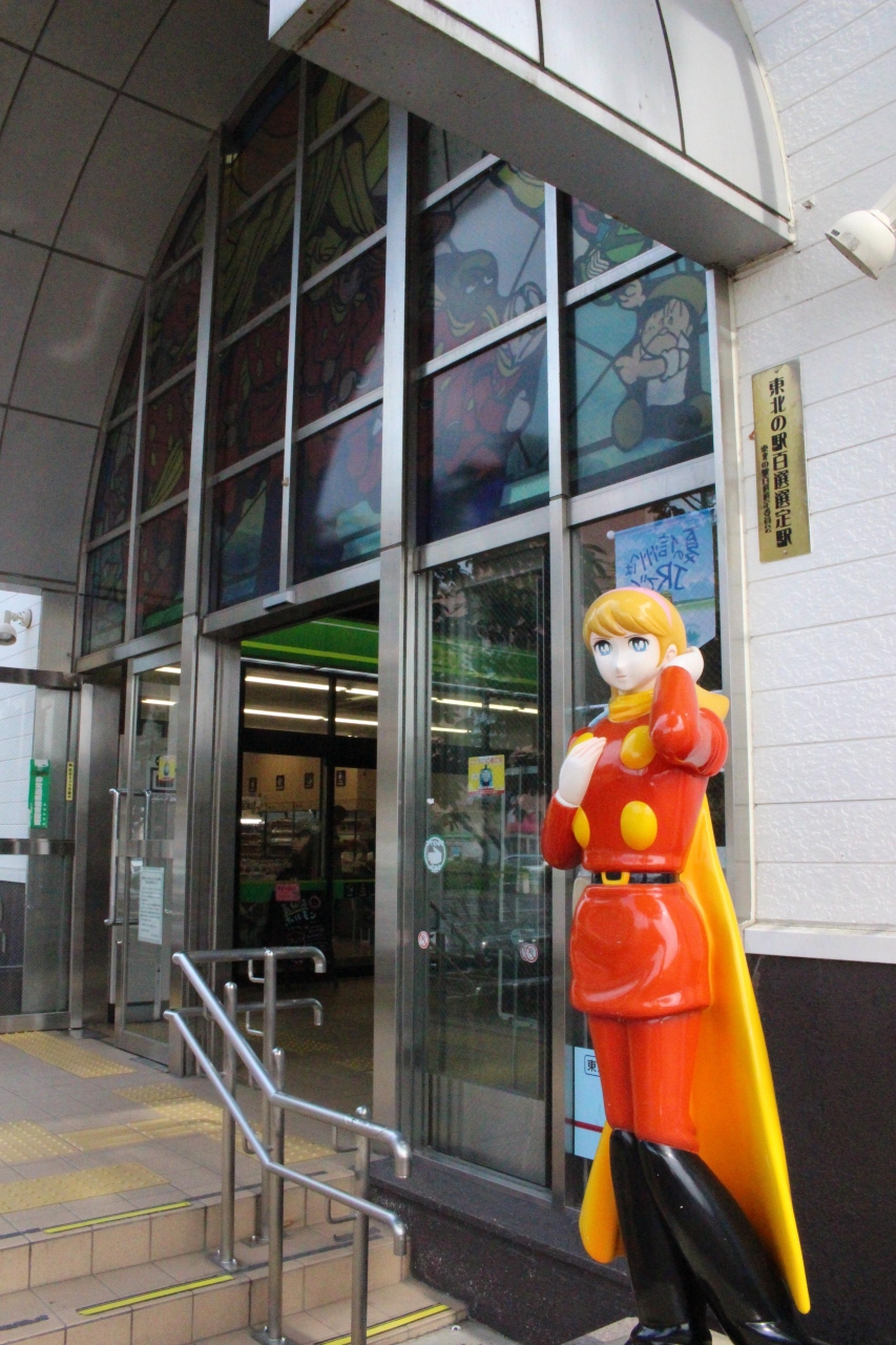 市内に石ノ森萬画館があるためか、駅の中も外も