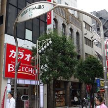 神田神保町あたりで靖国通りの南側にあるすずらん通りの商店街です。古書店街は靖国通り沿いに加えてすずらん通りにも広がっています。特に中国の書籍を扱う書店など特徴ある本屋さんなど目立ちます。飲食店も多く昼食時は行列を見かけます。