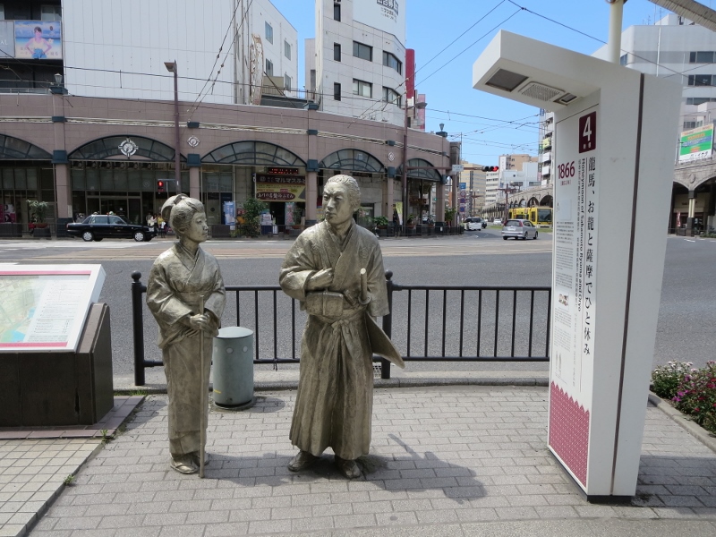 鹿児島市内の山形屋デパートのそばの交差点角にあるので、すぐわかりました。龍馬が小さいなと思ったら、実物大ではありませんと書いてありました。龍馬と妻のおりょうさんが鹿児島に新婚旅行に来た時の様子を再現しているようです。おりょうさんもこの時が一番幸せを感じていただろうと思いました。