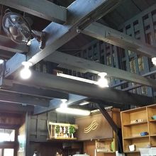 カウンターとテーブル席があり、オープンキッチンの形式でスッキリと広い空間です。石造りの蔵を改装したようです。