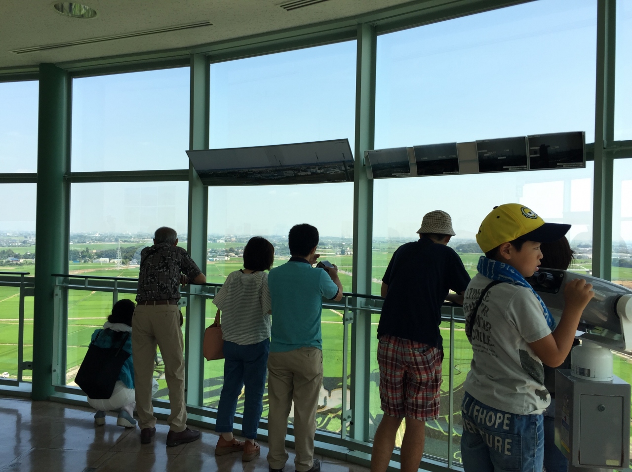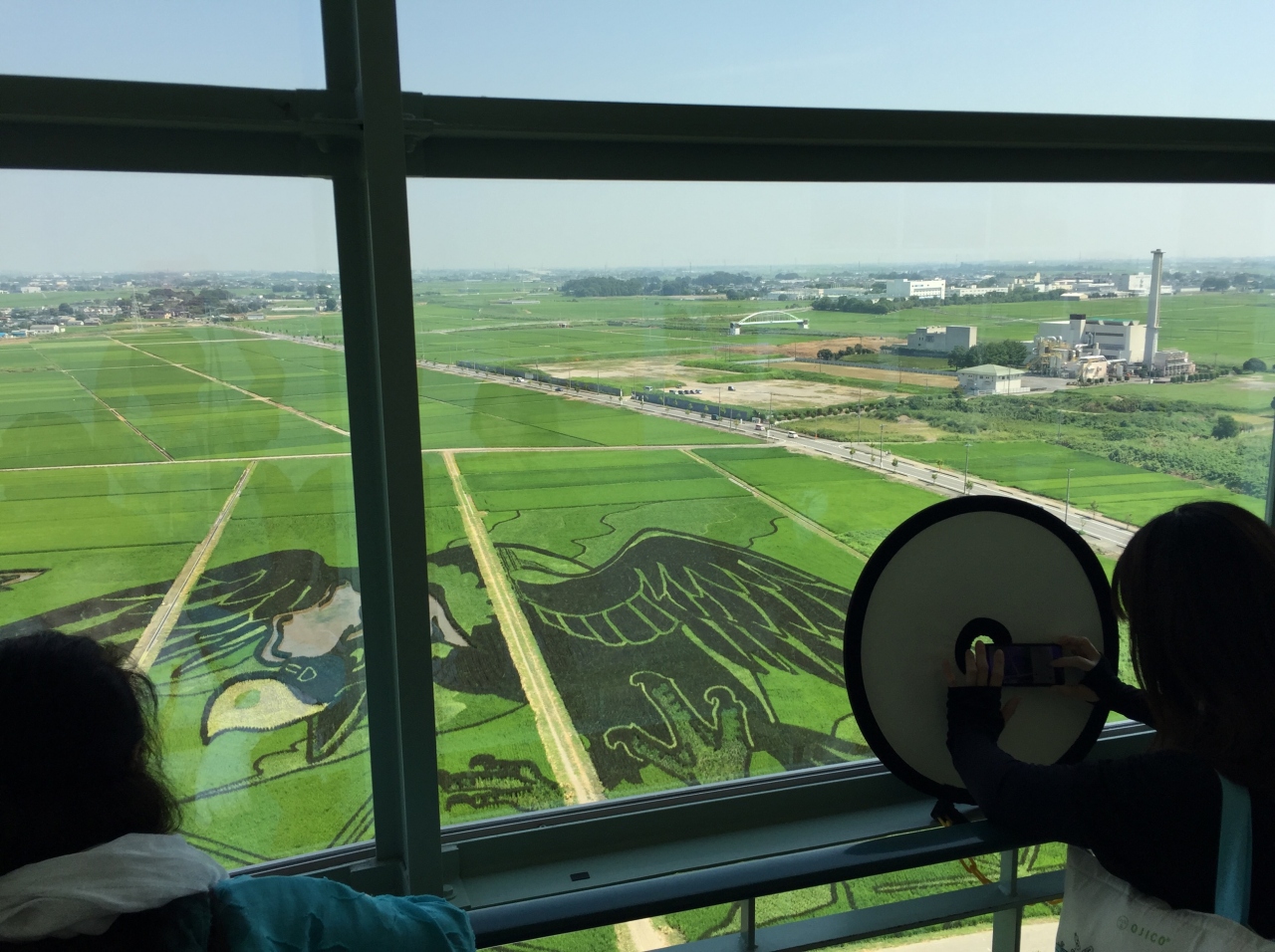 田んぼアートは冷房の効いた展望タワーから眺める事が出来ます。