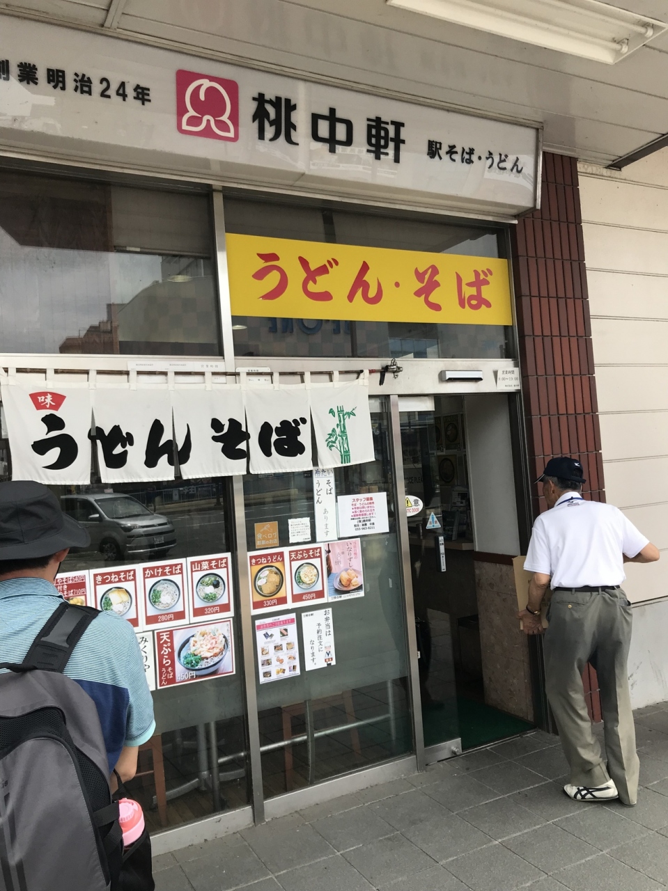 御殿場駅前にある、お蕎麦屋さんの桃中軒です。旅行中ですが、気軽に入れるお店でしたよ。秘伝のブレンドされたおつゆは甘めでお出汁がよく出ています。揚げたての天ぷらが入ったみくりそばがオススメメニューです。