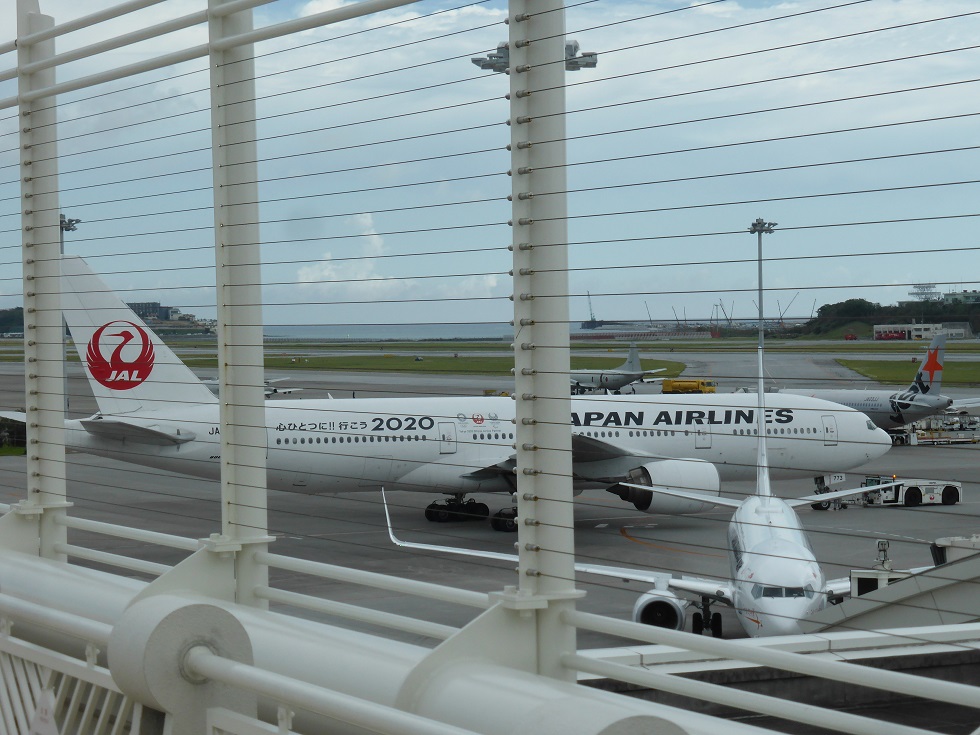 帰りの待ち時間に展望室から飛行機を眺めもう終わりかと思いつつも今から飛行機に乗ってどんな島々の風景を眺めることができるのかと期待と喜びが高まります。