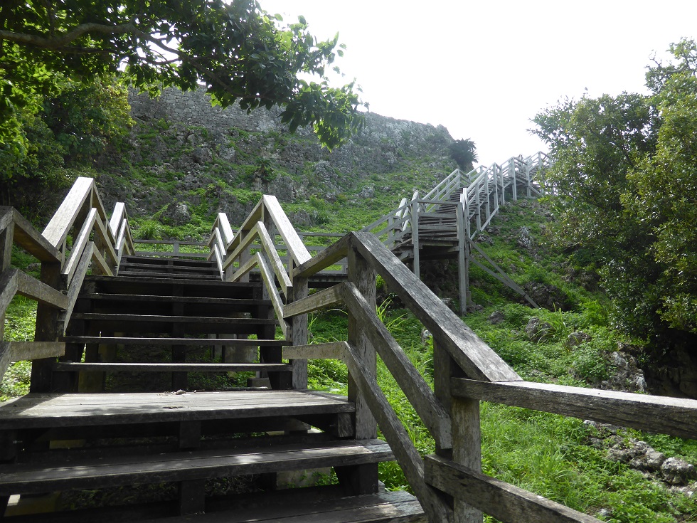 そこから木でできた階段を上ります。上に行く従い階段の幅が狭くなります。
