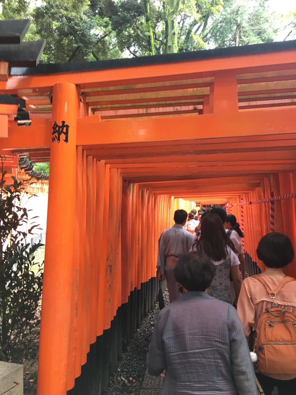 伏見稲荷神社を奥に進むと、ひたすら続く鳥居が見えてきます。山の上まで続いていると思われますが、ゆうに1000本は超えていると思います。ただ、最初はテンションがあがるのですが、ひたすら景色が変わらないので、結局途中で引き返してしまいました。15分ほど歩くと分岐があるので、そこで引き返すくらいがちょうど良いと思いました。