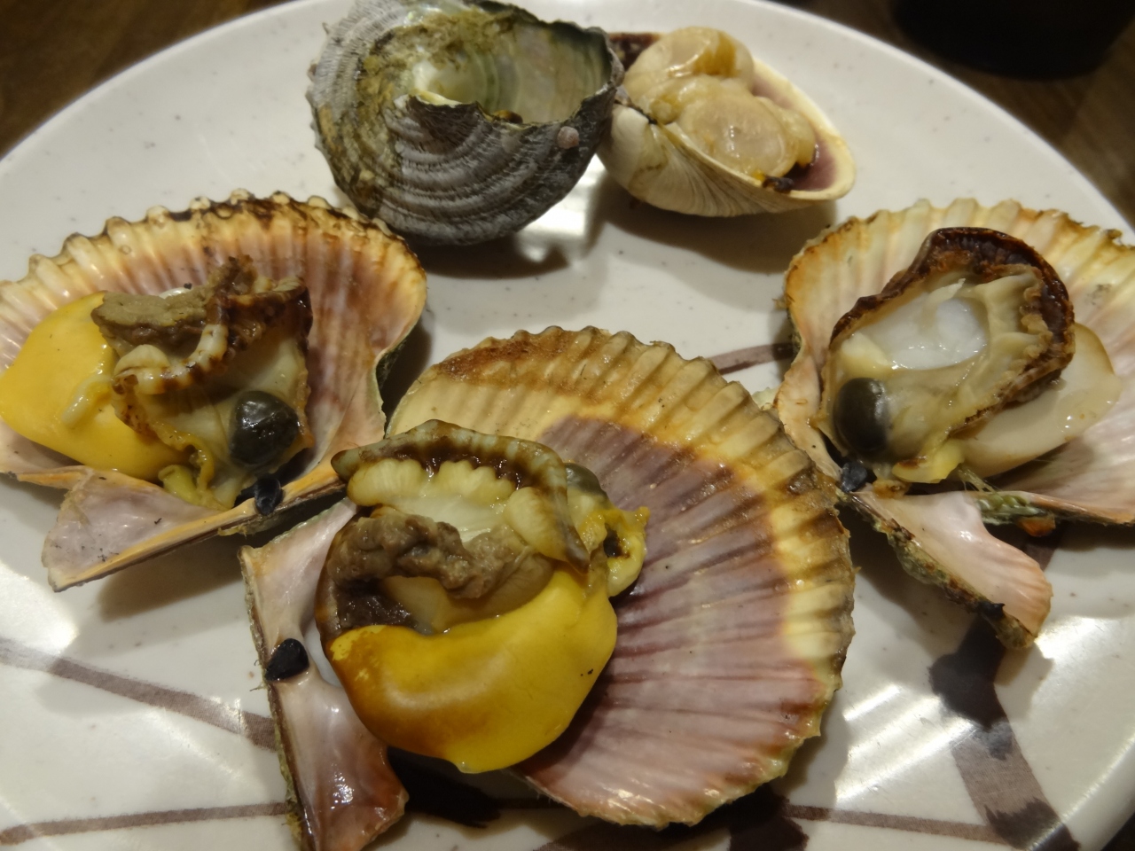 - 刺身と焼き貝、牡蠣の塩辛は絶品