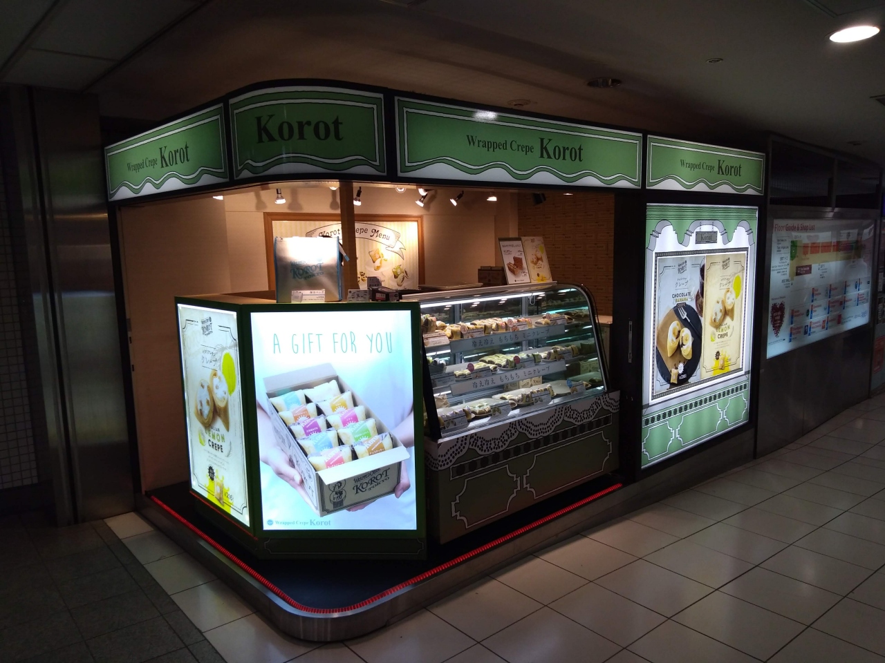 小さいですが、新宿の京王モールアネックス店にもKOROTがあります。ラップドクレープの10個セットは、手土産として重宝していて、10種類の違ったテイストを楽しめるのが最高だと思います。個人的に一番好きなのは、濃厚なカスタードクリームのクレープですが。