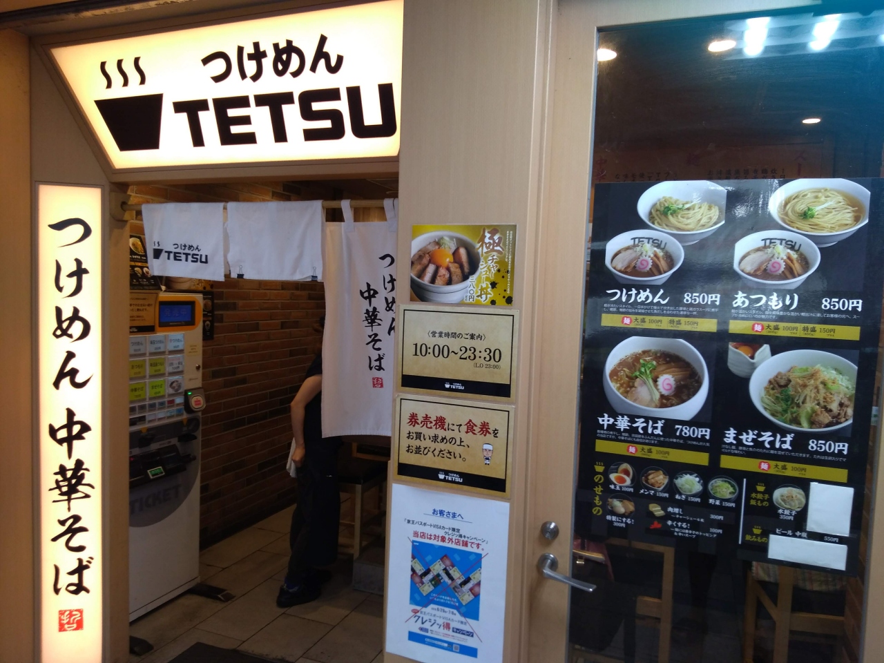 新宿の京王モールにある「つけめんTETSU」でのおすすめは、やはりつけめんで850円程度とたいへんお手頃価格です。ここのつけめんを求めてわざわざ遠方から来る人もいて、いつもせまい店内は混みあっている状態です。