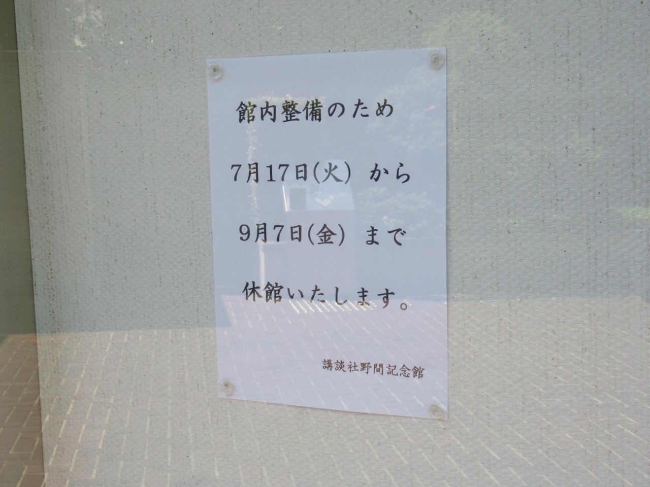 「館内整備のため 7月17日(火) から 9月7日(金) まで 休館いたします。」