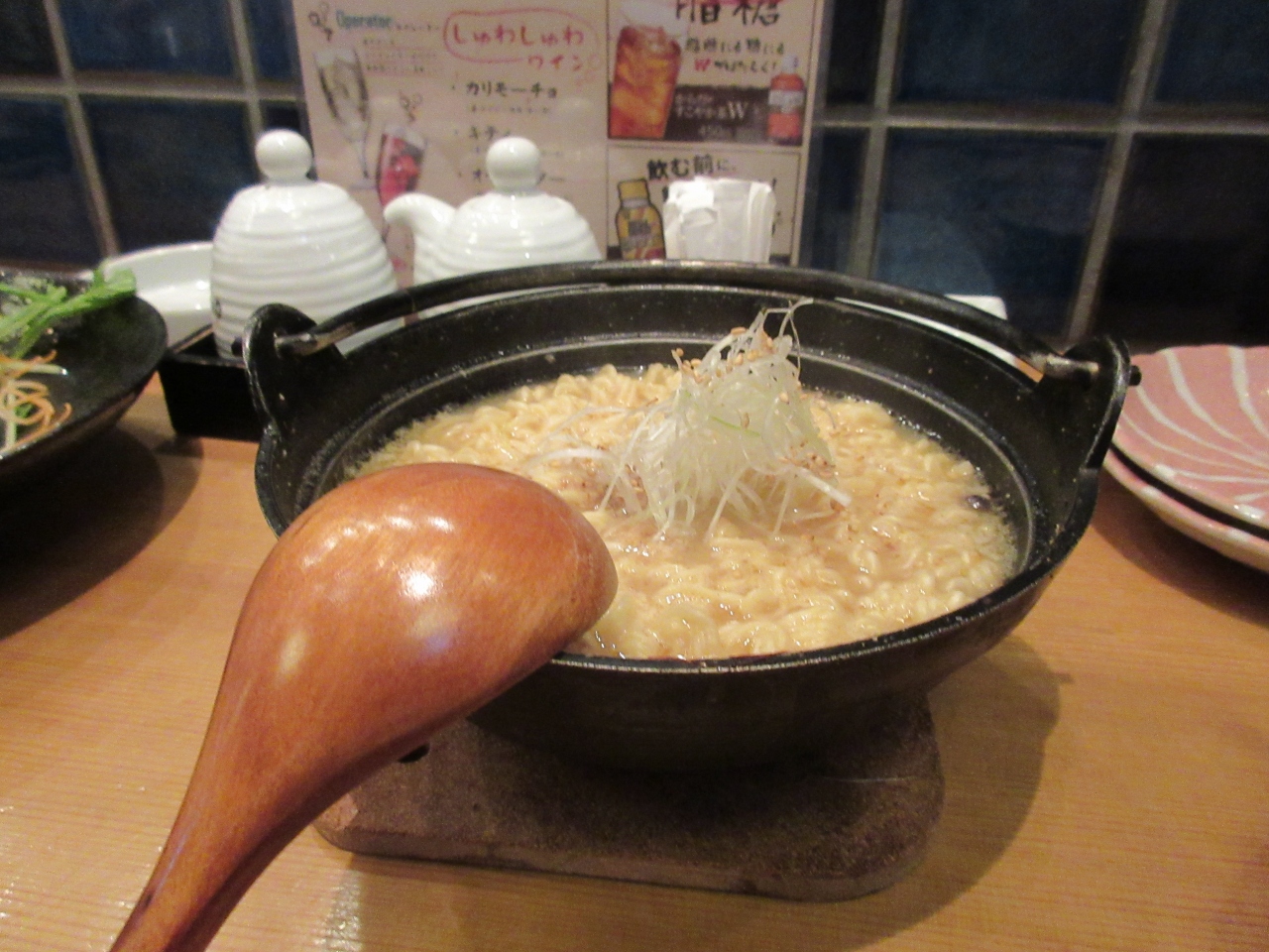 夕食兼プチ飲み会という感じで訪問しました。えだ豆、いかしゅうまい、せせりポン酢、エビのマヨネーズ(結構大きなエビ)、ごまさば、もつ小鍋(ラーメンを追加)というメヒューで楽しみました。