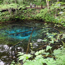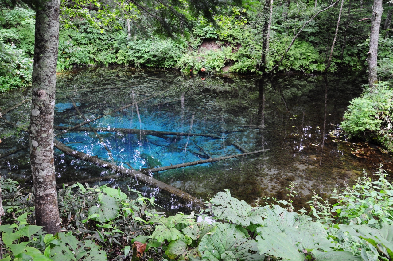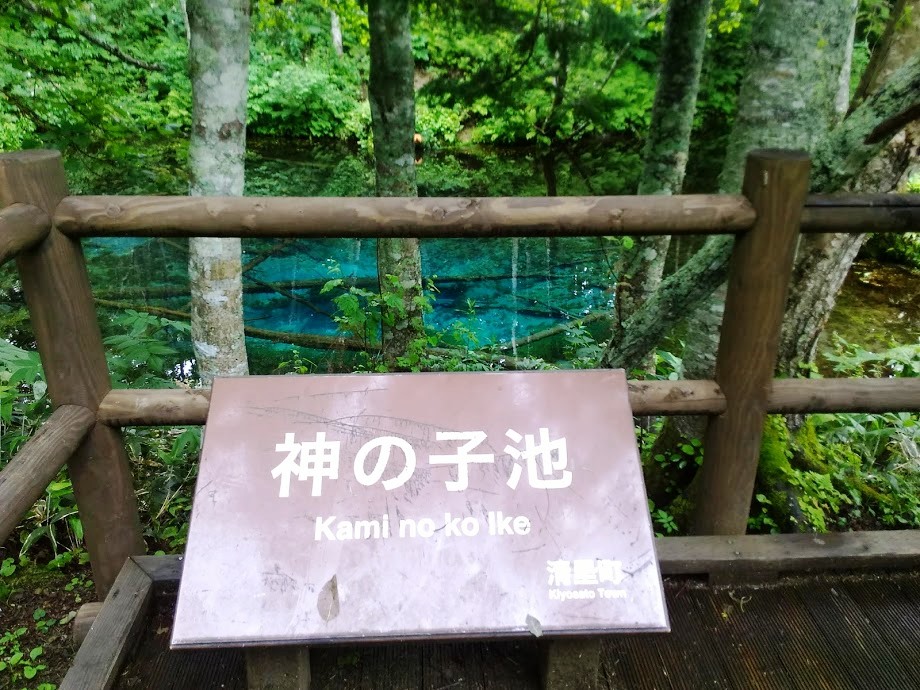 最初の計画では摩周湖は第一駐車場側から見る予定だった。あちこち青い池を見ているので、ぜひ神の子池も見たかったが、摩周湖第一駐車場からは一旦北に行ってから戻らなければならず、行程上諦めていた。ところが、知床観光船の午後便欠航により翌日に繰越したため、午後の予定が空いてしまった。急遽神の子池に行くことにした。道道1115号線からの分岐点には「神の子池風景林」の大きな木の看板がある。分岐してすぐに未舗装路となる。この道が池まで約2㎞続くが、それほど狭くないので、時速30㎞以下でゆっくりと登っていく。30分ほどで何十台も置けそうな広い駐車場に着く。駐車場から木製の通路が作られているので、そこを進むと池に達する。美瑛の青い池と異なり、水が透明なのに青い色をしている。山口県の弁天池も透明で青いが、こちらは山の中で神秘的な雰囲気を漂わせている。水の摩周湖からの伏流水らしく、とても綺麗で水が湧き出ているためか水面が動いているのが分かる。池の中には小さな魚が結構いるようだ。そのまま池を回って山道に出て、駐車場に戻れるが、山道にはヒグマに注意の看板がある。