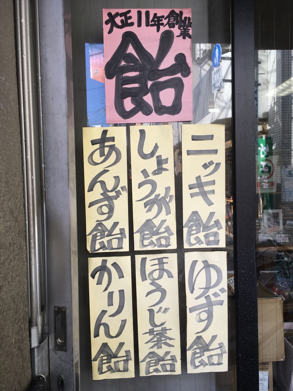 今や観光客で大賑わいの谷中銀座商店街の北の入り口にある飴屋さんです。飴以外にも芋けんぴなどなんとなく懐かしくておいしいお菓子が手ごろな値段で手に入ります。谷中銀座の菓子屋さんはほとんど最近できた観光客用の店ですが、ここは本当に昔からやっている地元の老舗です。味も確かなので特におすすめです。