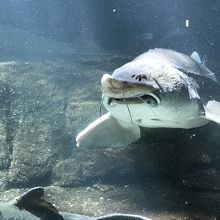 なかでも数十匹のチョウザメがいる水槽では口の中でに指を入れる事ができたりしたり楽しめます。