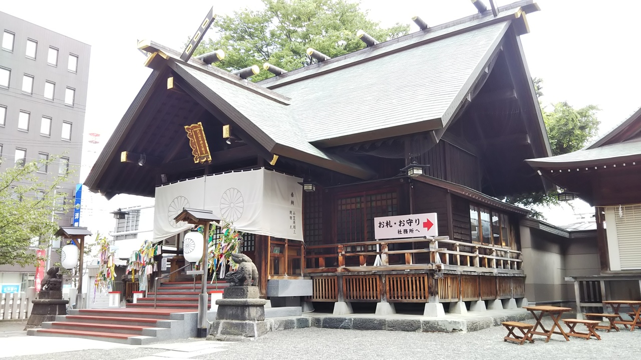 交通の便がよくなかった頃、北海道神宮におまいりにいけないので仮の宮としてできたそうです。街中にありますが、恋愛成就などのご利益があるそうで若い女性の姿が目立ちました。社務所は立派で、御朱印はここでいただくことができました。