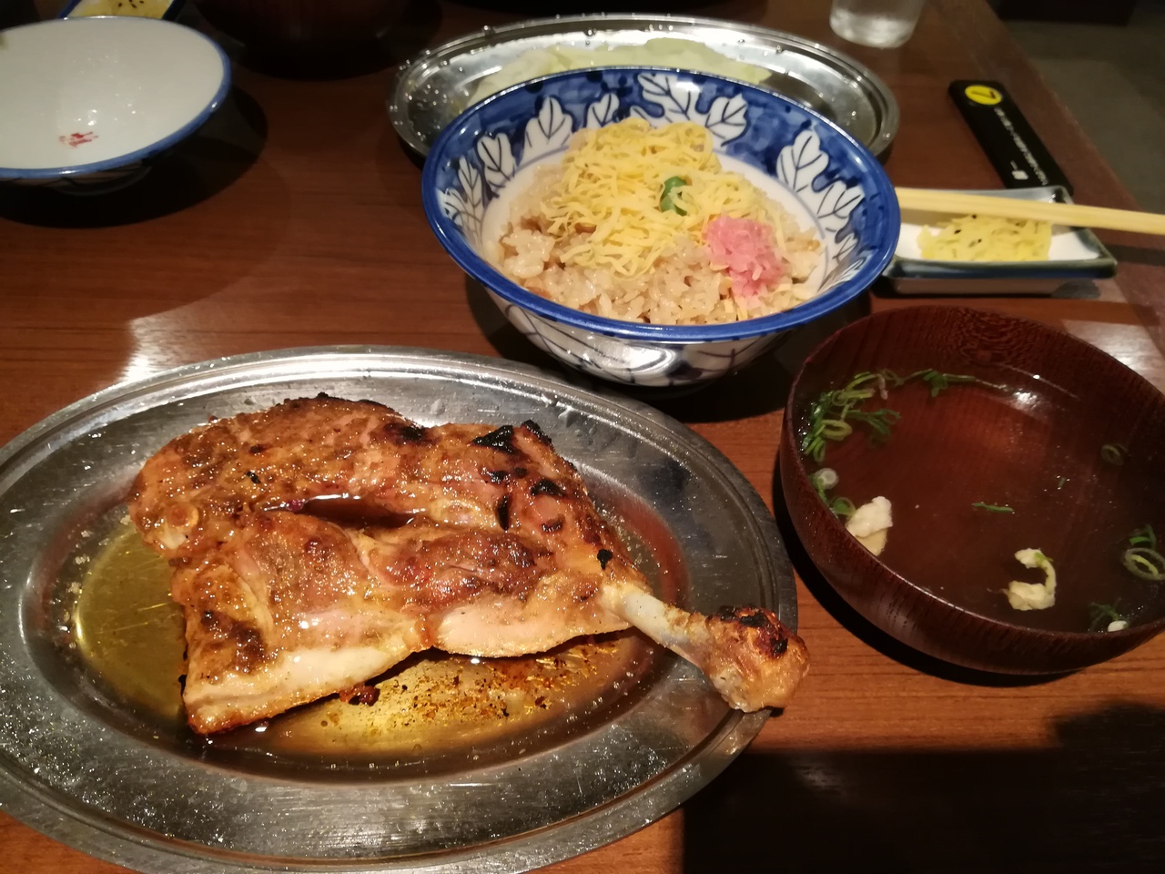 ひなどりととり飯を頼んで1300円ほど。骨付き鶏を食べられるところは居酒屋が多いとのことですが、こちらは女性ひとりでも入りやすい雰囲気。鶏はじっくり焼くので時間は少しかかりますが、皮がパリッパリで美味しい!