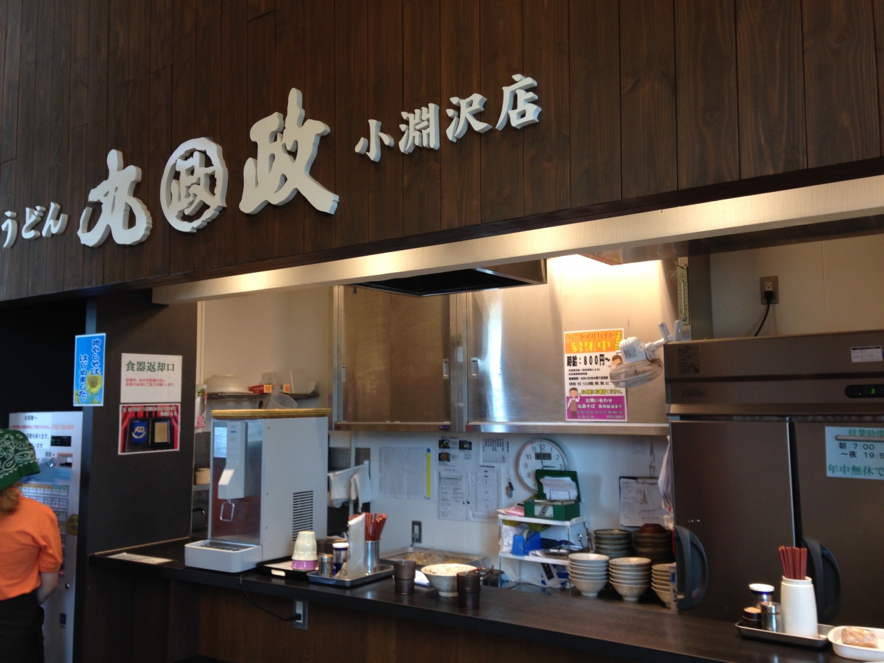新しい小淵沢駅舎の2階、改札口横にあります。厨房に面したカウンターは狭いですが、オープンな雰囲気で店の狭さを感じさせません。すぐ脇にガラス扉の待合室があり、丸政で販売しているおにぎりを待合室で座って食べることができます。山賊そばは山梨の名物山賊焼きがのっているそばです。ニンニク風味が効いている鶏の唐揚げ山賊が好きなので注文しました。訪れた時は昼時を過ぎていたので利用者は少なく、電車を待つ間に利用できるので便利です。