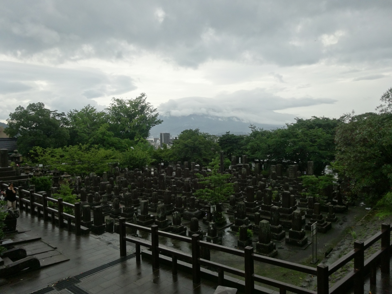 桜島を望む高台にあり、墓地や駐車場から桜島が綺麗に見えます。