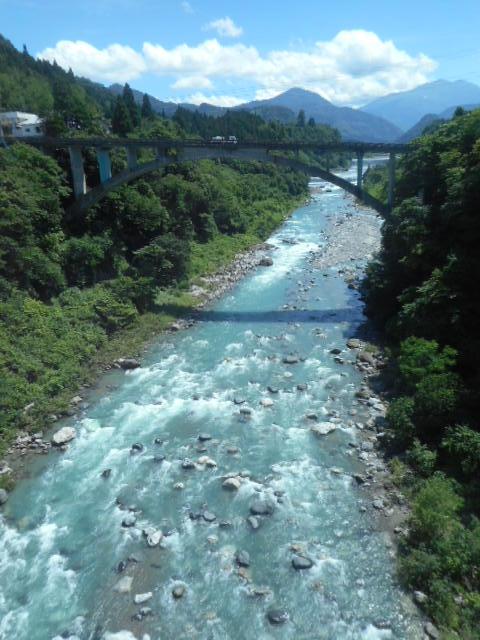 富山を流れる川です。一級河川で立派な川です。とくに訪問した日は前日まで雨の多い日だったこともあり、水量も多めでした。昔は氾濫が多くて「常に(氾濫しないように「)願って」という意味の名前だとか。この砂防については立山駅の博物館で学べましたので、行ってみるといいかも。