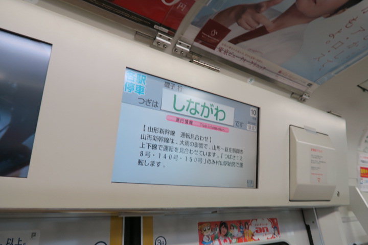 乗車口の扉の上にはモニターによる行先案内、新幹線などの運行状況があってなかなかとは思うものの、路線が頭に入っている人じゃないと理解できないかも!外国人は無理かな?!