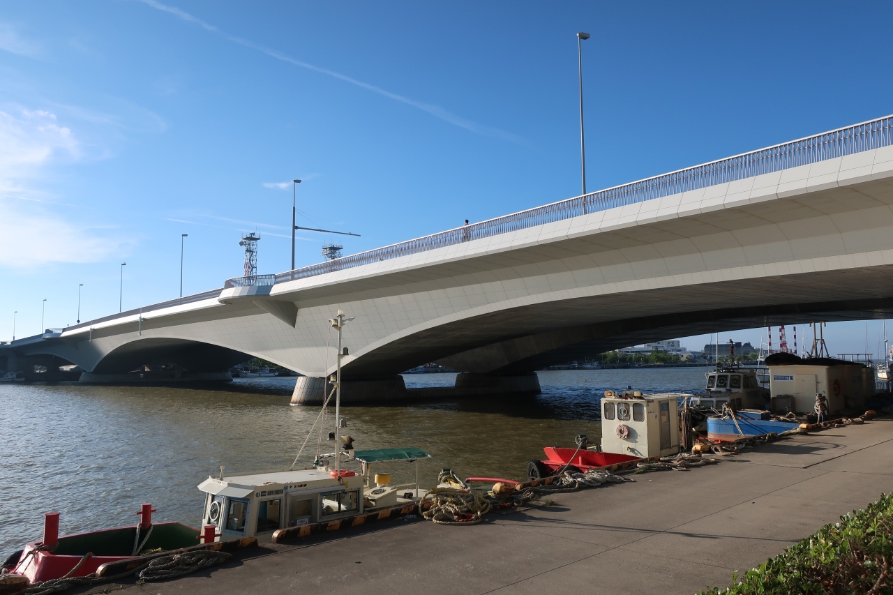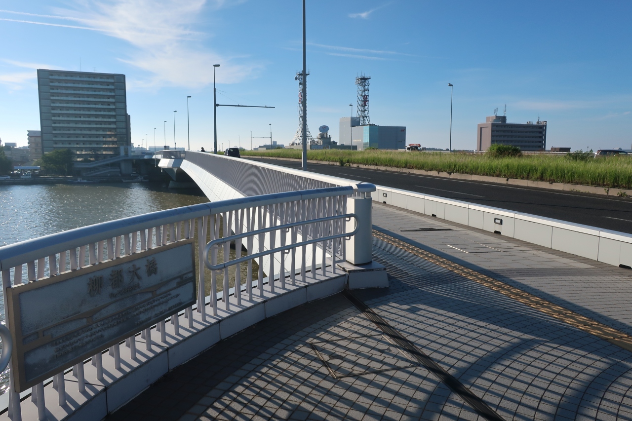 新潟市内を流れる信濃川に掛けられた橋です。萬代橋の下流に2002年に掛けられた片道2車線の車道、および両サイドに遊歩道が設けられ、国道7号線の一部をなしています。