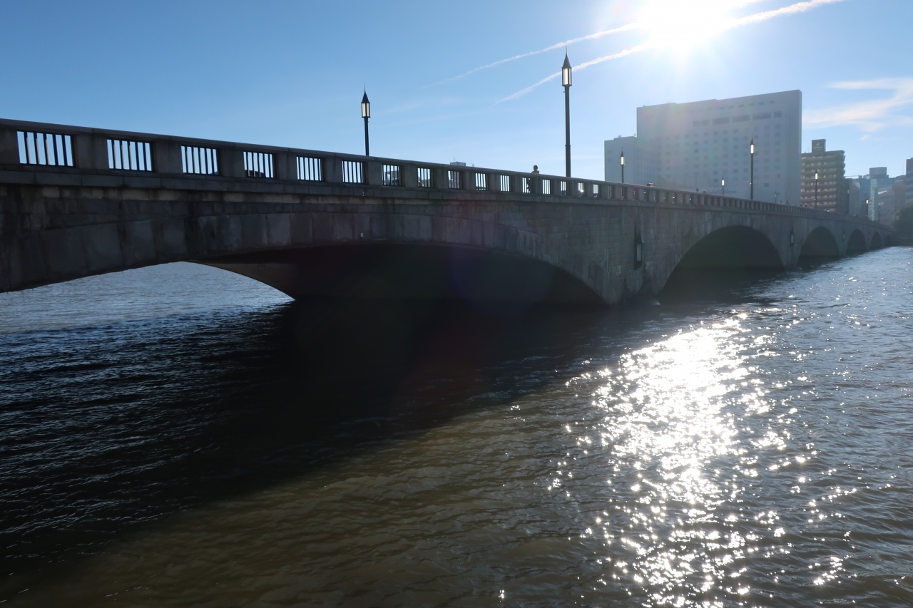 新潟市内を流れる信濃川の河口に昭和4年の掛けられ橋です。新潟市の観光地としては真っ先に名前が挙げられる程有名な橋で、日本橋に続いて橋としては2つ目の重要文化財。石造りのアーチがとても美しいフォルムの橋です。今回夕方前に訪れたのですが、昼間に見る橋はガイドブックに掲載された夜景の橋ほどではなく、写真を撮るなら夜がお薦めです。