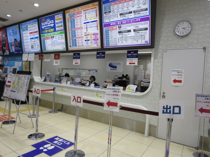 鹿児島中央駅から地下道で行かれます。雨が降っていたのに地下道がつながっていることに気がつかずに少し濡れました。でも駅前の通りを渡ってすぐ向かいのビルにあります。鹿児島空港へ向かいましたが、本数も多く便利です。他の都市へ行く便もありました。