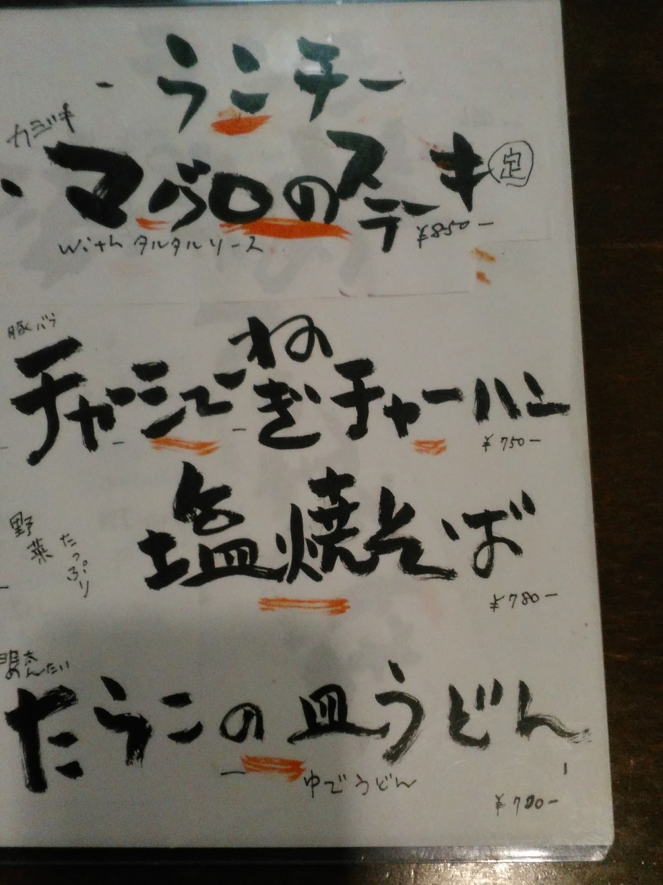 仙台市役所の近く、国分町通りにあります。ランチは四種類で700円から850円です。今回はマグロのステーキ定食850円にしました。ステーキのタレは濃厚で、ご飯が進みます。見た目よりマグロが大きく、余計ご飯が足りませんでした。