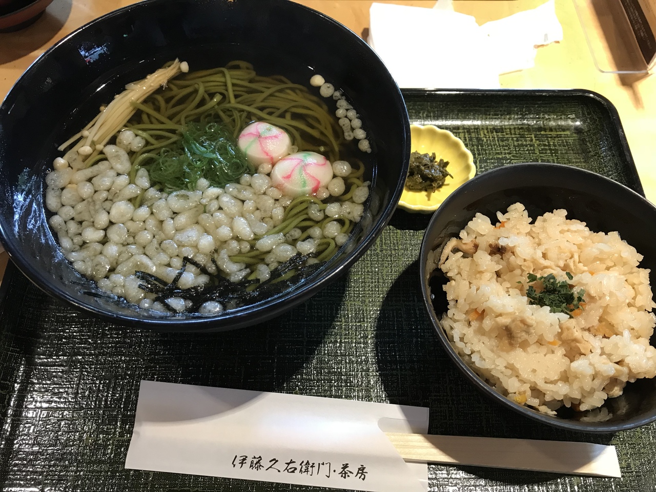 メニューはスイーツ中心ですが、茶蕎麦とニシン蕎麦がありプラスかやくご飯やプチパフェが付いたセットがあります。