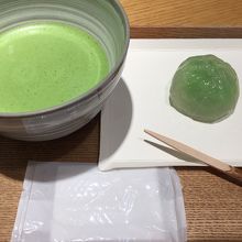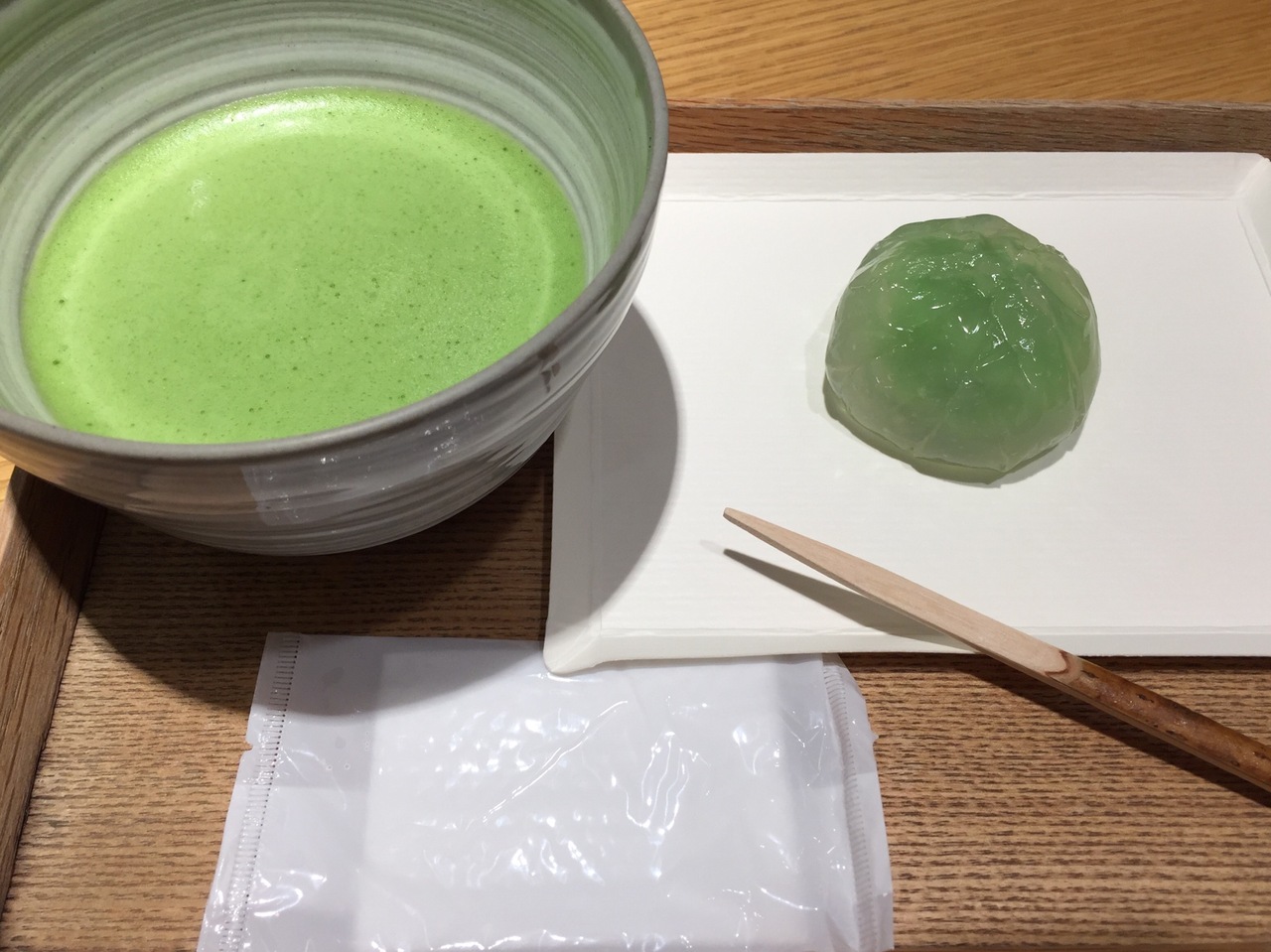 宝塚阪急百貨店内にあり、お店は少しオープンスペースとなっています。平日の夕方に行くと、店内は空いていました。みたらし団子やかき氷がいただけます。今回は、お菓子+抹茶セットを注文しました。700円程でいただけるので、少し休憩する分には、使いやすいです。