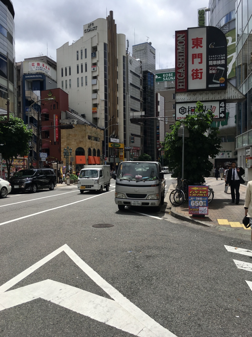 三宮の繁華街を東西に通る生田新道。繁華街になっているので、夜も栄えている場所が多いです。レストランの数はかなりのもので、夜でも営業しているお店だけでなく、24時間営業のお店も多くあります。道は歩車分離がきちんとしていますが、フラワーロードなどよりも歩道は狭いので、若干あるきにくいです。山がちな神戸ゆえに自転車の人は少ないです。