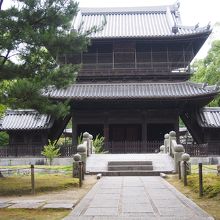 山門はいわば俗世間との境界。手前に池があり橋を渡って山門へ赴くことになります。山門自体は明治後期に建造されたもののようですのでそれ程古いものではないようですが、掲げられている額は1204年に後鳥羽上皇から贈られたものとされます。